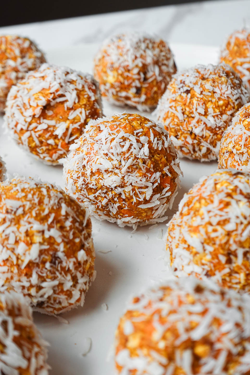 - Key Ingredients: Carrots, oats, medjool dates, pecans, almond butter, cinnamon, shredded coconut